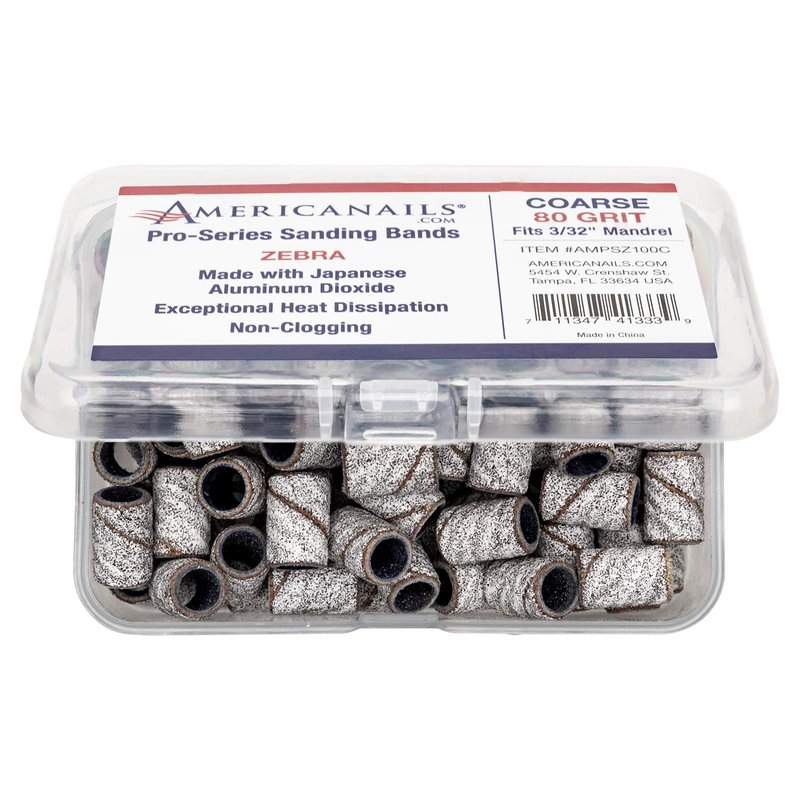 Americanails Pro-Series Zebra, Coarse 80 Grit, Professional Sanding Bands for Acrylic Nail File Drill, E-File Sanding Drill Bit Piece Set, Nail Polishing and Filing Tools - 100 Count