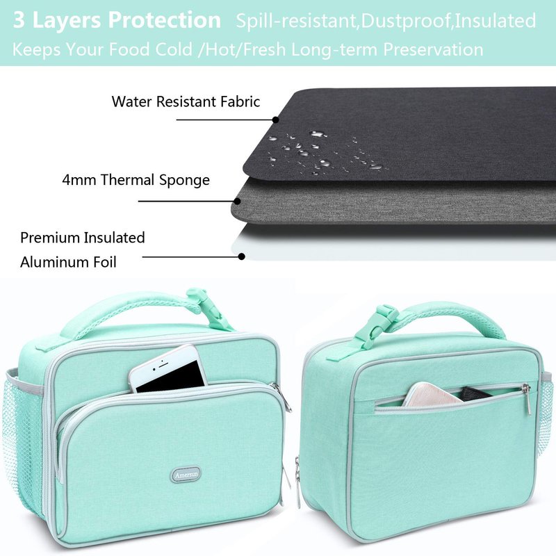 - Lifetime Warranty! Insulated Lunch Bag: The outside of the lunch box is made of waterproof and stain resistant Oxford fabric, which is reusable, durable and easy to clean. The inner lining is made of food grade aluminum foil and filled with 4 mm sponge. The food can be refrigerated or kept warm for several hours. Equipped with premium zipper, easy to open. (Not suitable for adults)