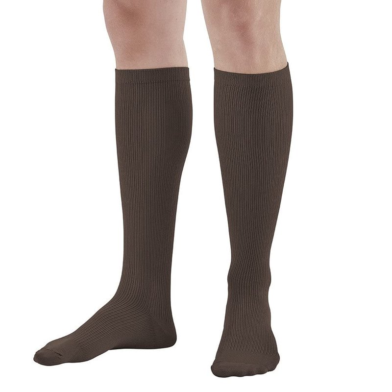 Ames Walker AW Style 166 Men's Travel 15-20 mmHg Moderate Compression Knee High Socks Brown Medium