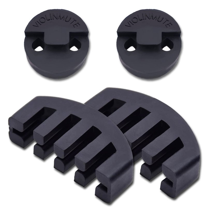 Amgate 4 PCS Rubber Violin Practice Mute Set, Included 2 PCS Claw Style & 2 PCS Round Tourte Style, Black