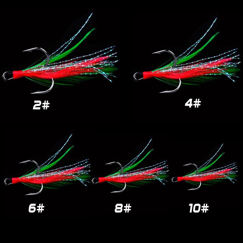AMHDV Feather Fishing Hooks Strong Treble Hooks Size 2 4 6 8 10 (Pack of 20) (Red and green, 2#)