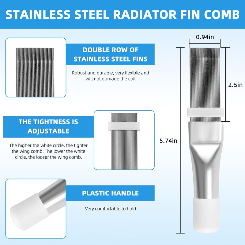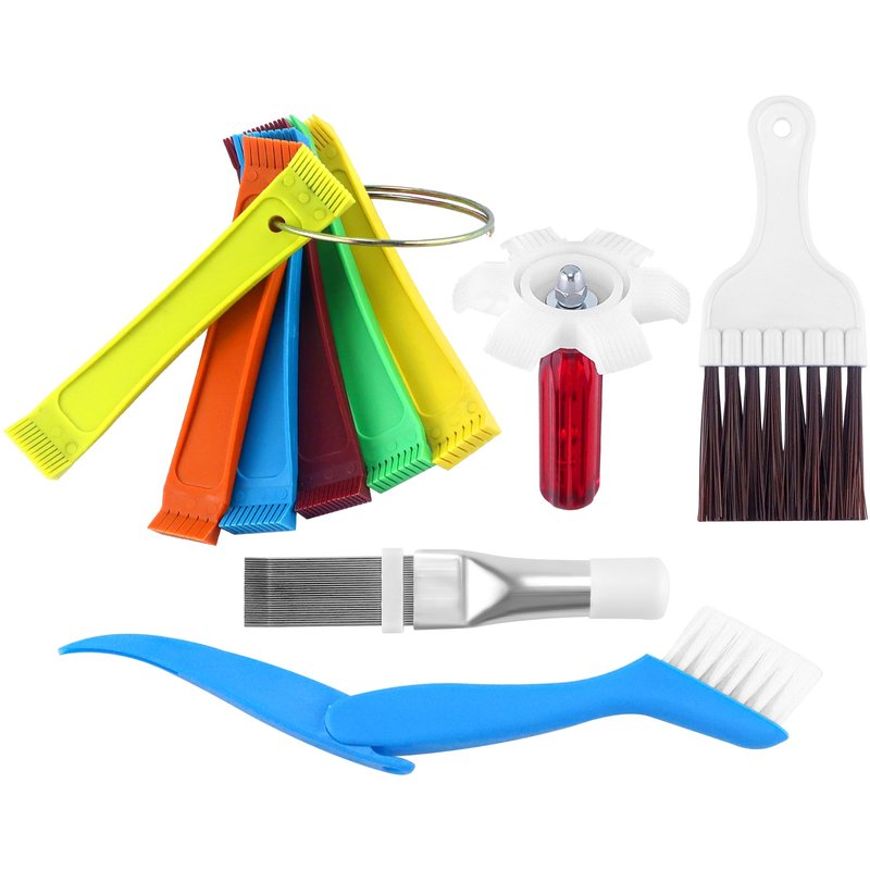 - [Package Included]: 1 x FCR6 ring fin comb, 1 x 6-in-1 plastic air conditioner fin comb, 1 x stainless steel radiator fin comb, 1 x air conditioner fin cleaning brush, 1 X foldable cleaning brush