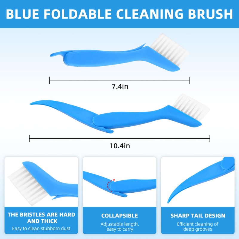 - [Fin Cleaning Brush]: Two different sizes of cleaning brushes can improve the cleaning efficiency and more convenient to use. The white brush is suitable for cleaning large areas and the blue folding brush is suitable for cleaning detailed parts