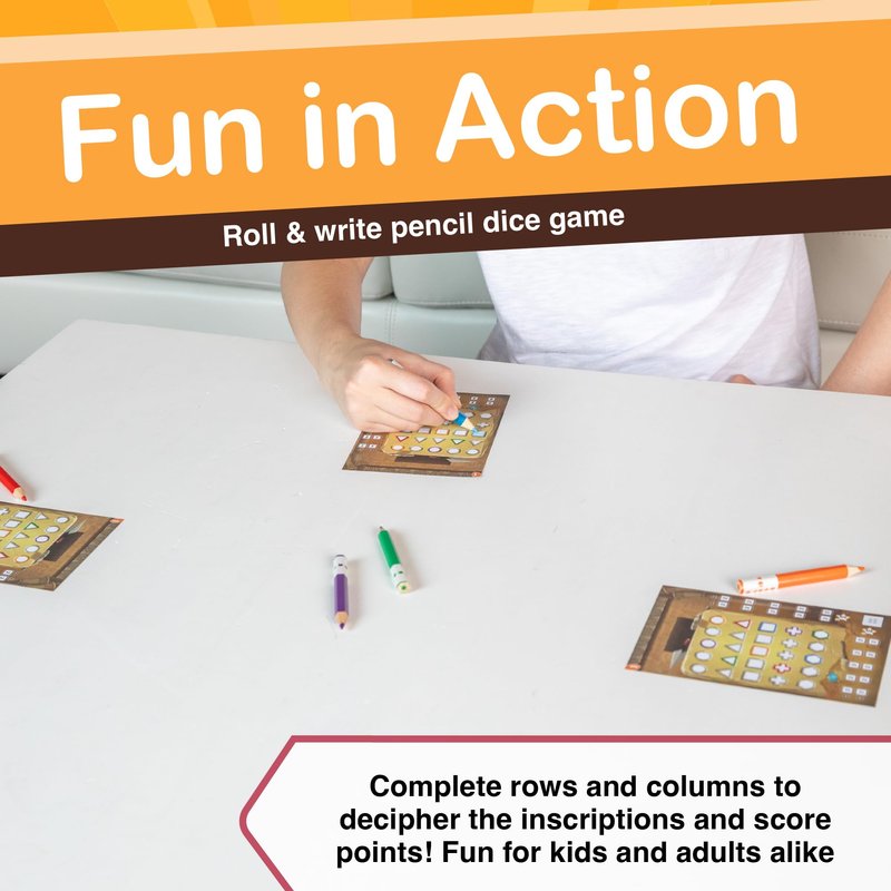 - INNOVATIVE ROLL & WRITE DICE GAME: Roll the pencils like rolling dice to determine which shape you color in on your play sheet, offering a unique & strategic gameplay experience.