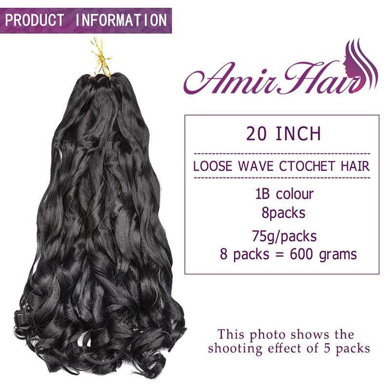 Amir Hair 8 packs French Curly Braiding Hair 20 Inch Loose Wave Braiding Hair Pre Stretched Synthetic Hair Extensions (1B) …