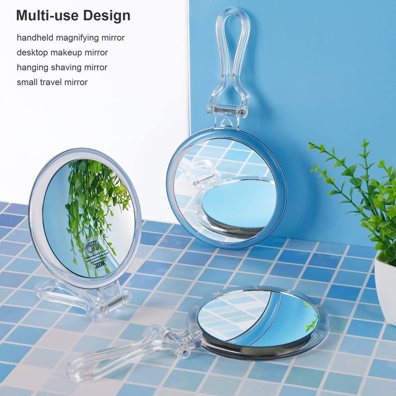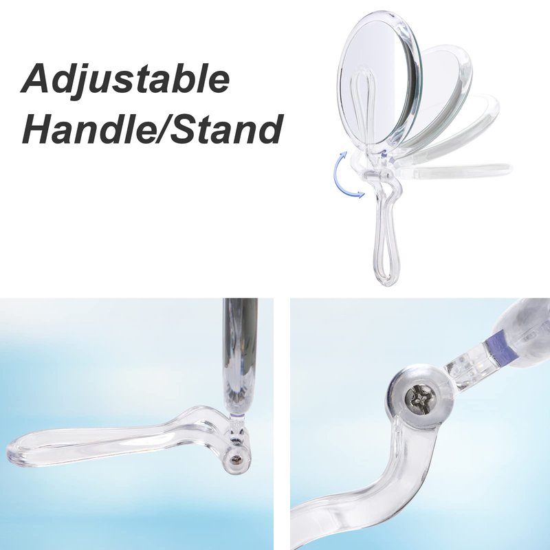 - 【Adjustable Handle / Stand】- With a flexible stand, it's a multi-use designed hand mirror with handle, which can be rotated multi angles to meet our needs. It's more than just a handheld mirror, but a sturdy stand table mirror, a magnified makeup mirror, a hanging shower mirror, a portable travel mirror, etc. It will be what mirror you need and like.