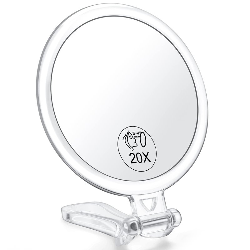 AMISCE 20x Magnifying Mirror, Travel Handheld Mirror - 2-Sided with 1X 20X Magnification Adjustable Handle, Portable, Small, Girl Women Mother's Gift