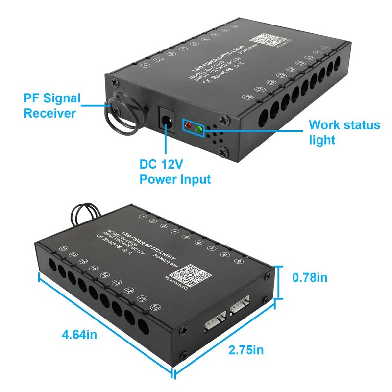- 18 Holes LED FIBER OPTICS LIGHT(6pcs*1.0mm fiber cable per hole) in 4m/13.1ft length.