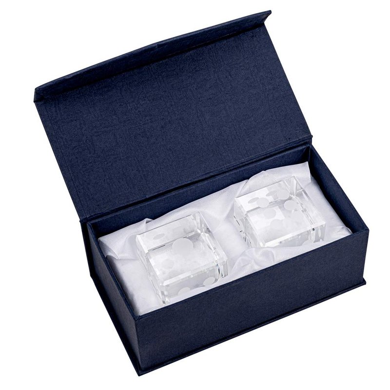 Amlong Crystal Pair of Dice 1.5" comes in a set of 2 dice, each standing 1.5" tall, with nice gift box.