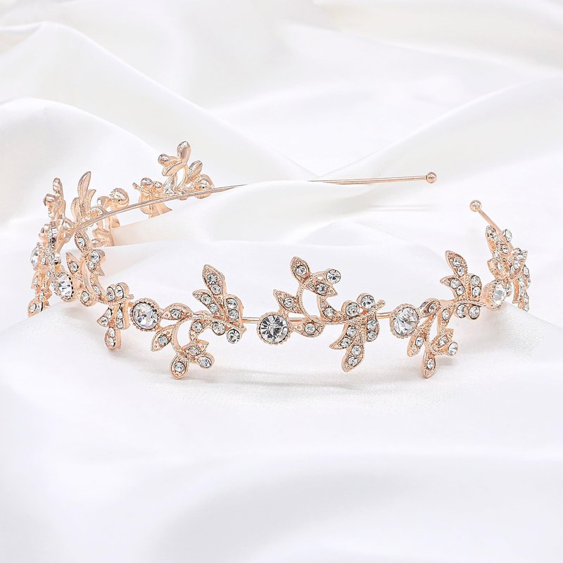 Ammei Headpiece Gold Headband Bridal Tiara Flower Shape Women's Headpiece Wedding Hair Accessories (Light Rose Gold)