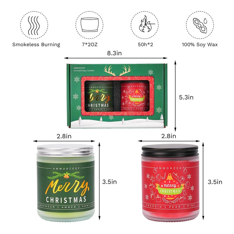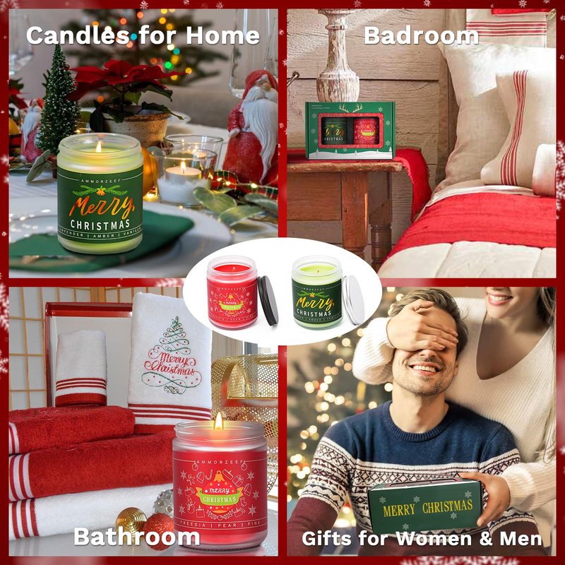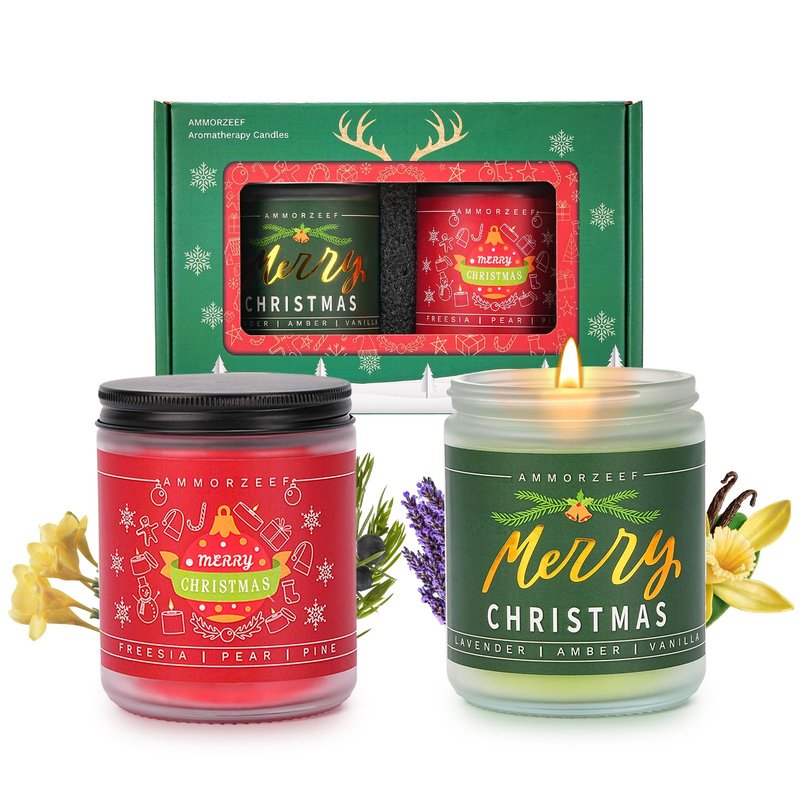 - WIDELY POPULAR SCENT: AMMORZEEF SCENTED CANDLE GIFT SET INCLUDES 2 SCENTS: Lavender Vanilla (green), Freesia (red). A popular and unique scent to fill the room with the fragrance and ambiance of Christmas.