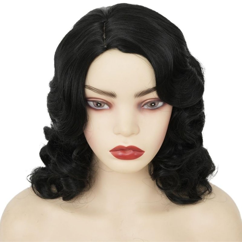 Amnenl Black Finger Wave Wigs for Women Long Curly 1920s Wig Vintage Wigs Lady Synthetic Cosplay Costume Wig