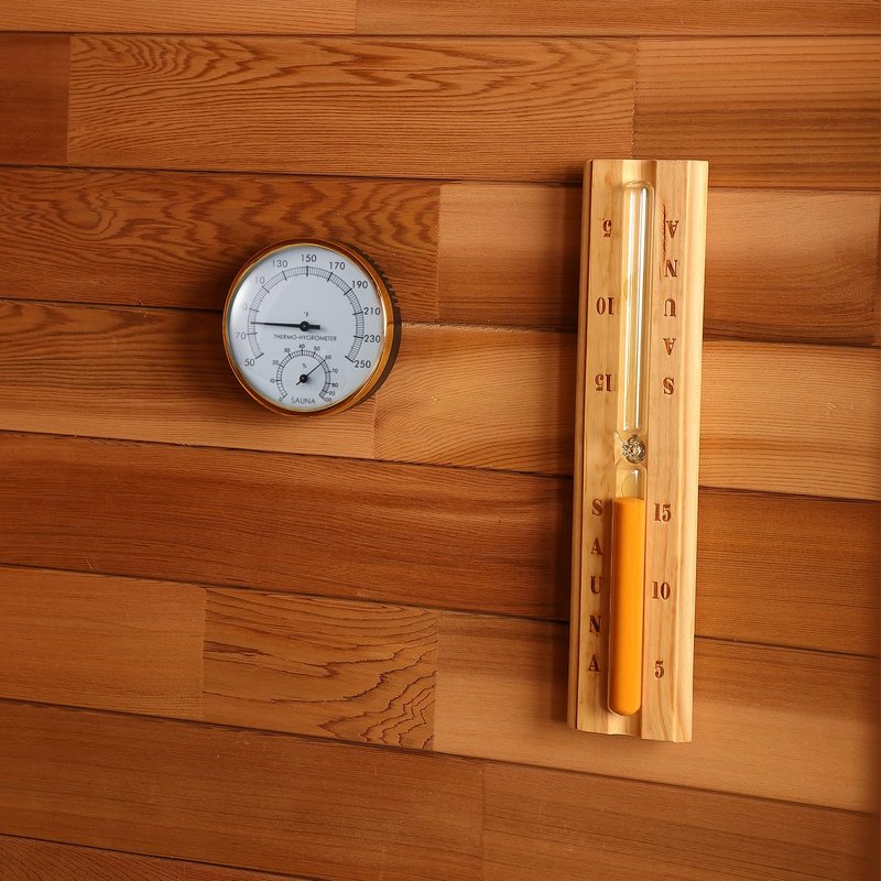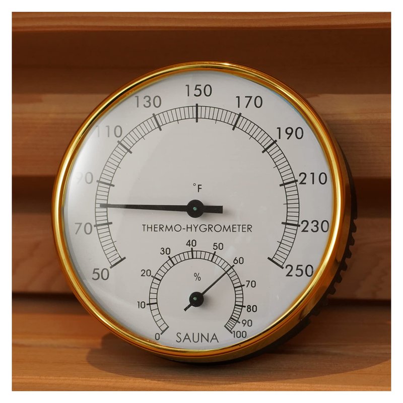 - 2 IN 1 SAUNA HYGROTHERMOGRAPH: 2 in 1 Sauna Room Thermometer Hygrometer is a necessary accessory for sauna rooms. It is very important to control the temperature and humidity in the sauna room. It gives you an instant and accurate indication of the temperature and humidity in the sauna or house, letting you know if the air is humid, dry or ideal