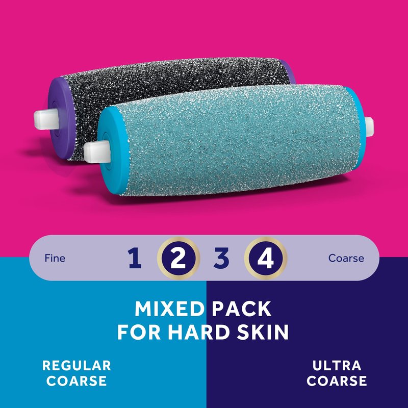 - Use the Ultra Coarse roller head for rapid removal of even the toughest skin or the Regular Coarse roller head for light hard skin or quick touch-ups.