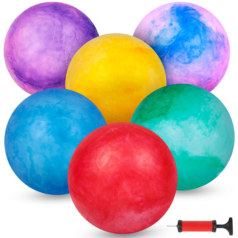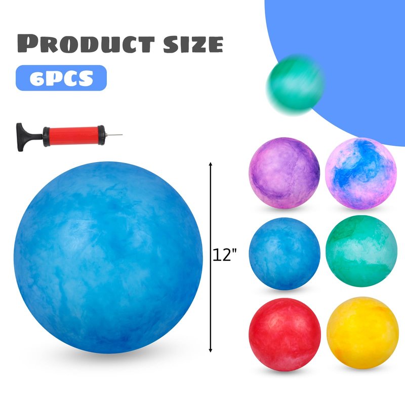 AMOR PRESENT 6PCS Playground Balls, 12 Inches Giant Marbleized Bouncy Balls Rainbow Dodgeballs Rubber Kickballs, for Indoor & Outdoor Games, Gym and Yoga Exercises, Sports Party Favors