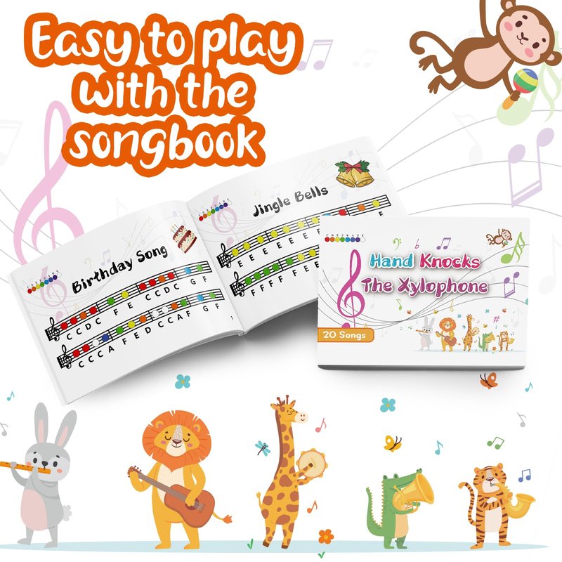 - Songbook Attached - We've included a collection of 20 popular songs, including classics like Jingle Bells. Simple follow the color marked on the book to shake the corresponding bell, melodious rhythm will be produced.