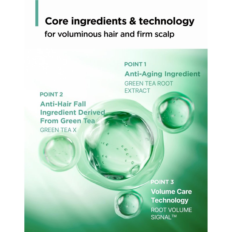 - ·HAIR ANTI-AGING: Contains green tea root extract to strengthen hair roots, improve scalp elasticity, and enhance hair resilience.