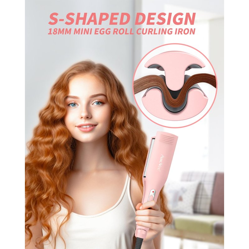 - [Tourmaline Ceramic Technology]AmoVee mini hair waver curling iron combines ceramic technology with tourmaline. The ceramic coating helps distribute heat evenly along each strand and helps to get rid of flyaway hair and smoothens it out, which seals moisture into your hair, helps reduce frizz, static and add extra shine. PTC heating professional tech to heat fast curling wand, allowing you to use it without damage your hair.