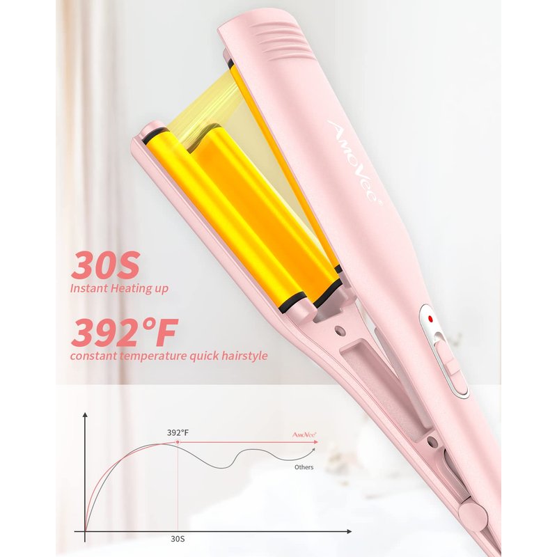 - [30s Rapid heating] The anti-static ceramic coating splint 30s to quickly heat to a constant temperature of 392 °F. 2 cm deep hair waver with a special one-piece plates design. Gorgeous continuous waves that last all day.