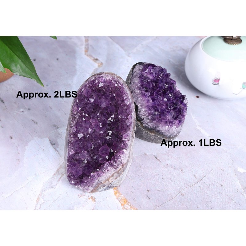 - Purple Amethyst Crystal Geode: 1 Unit, MEDIUM, WEIGHT: Approx. 1 to 2 LBS. (0.5-1kg) | SHAPE: Irregular. The edge is purely natural, Simple polishing of the edges