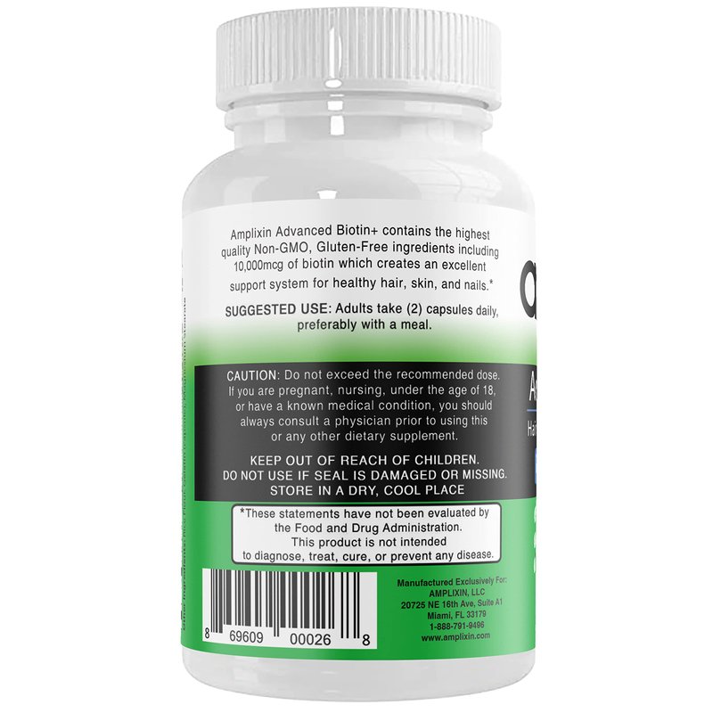 - How To Take: Take 2 capsules daily with food. Proudly Made In USA. Amplixin Advanced+ Biotin Hair, Skin & Nails Supplement is manufactured to the highest NSF and GMP standards in a state-of-the-art facility in Florida, USA.
