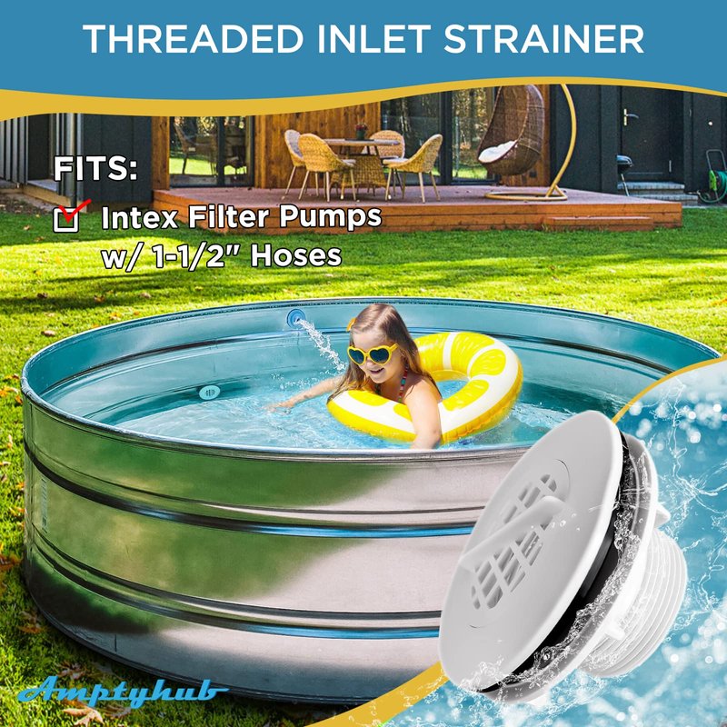 Amptyhub Threaded Inlet Strainer Kit Incl. Rubber Washer and Strainer Nut | Fits Intex Filter Pumps w/ 1-1/2" Hoses (1)