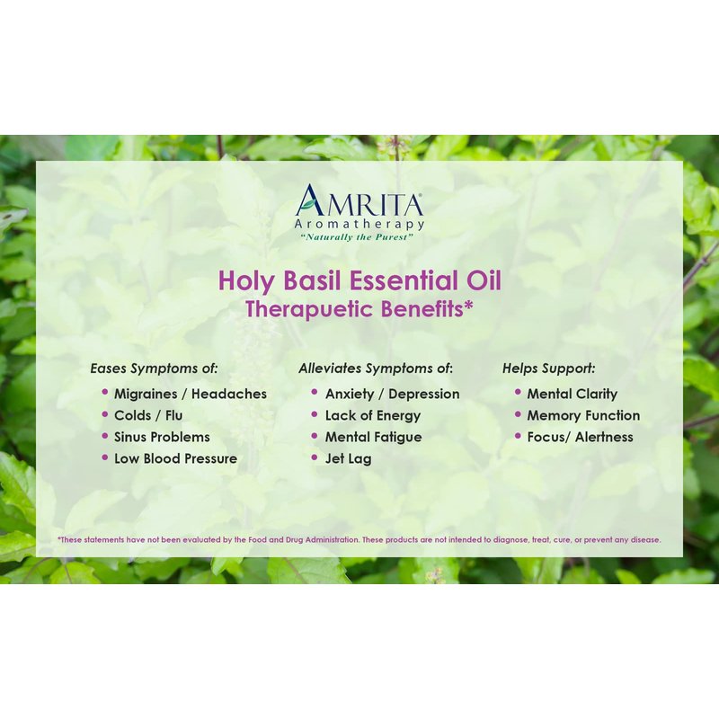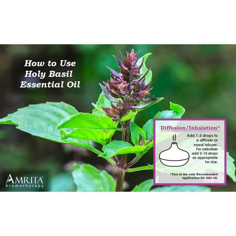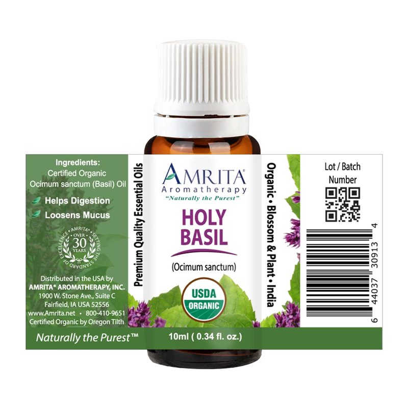 Amrita Aromatherapy: Organic Holy Basil (Tulsi) Essential Oil; 100% Pure and Undiluted Ocimum Sanctum; Premium Quality Aromatherapy Oil; Tested and Verified, Size: 10 mL (0.34 Fl. Oz.)