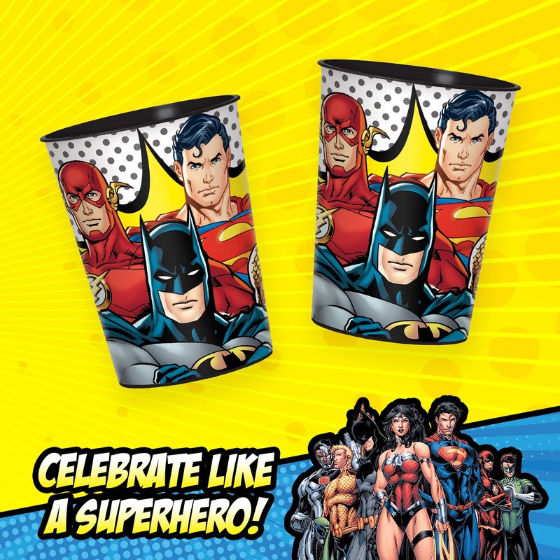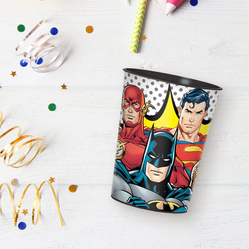 Amscan 8 Count Justice League Plastic Cups 16 oz - Sturdy Reusable Birthday Party Favor Kid Cup - Parties, Favors, Prizes - Classic Batman, Superman, and Flash Decorations Supplies Set