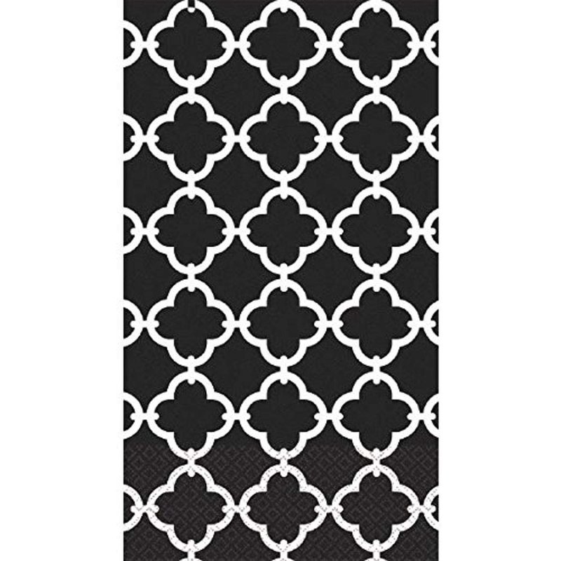 Amscan Black Moroccan Tile Disposable 2 Ply Paper Guest Towels Tableware, 7.7 x 4.5, White/Black
