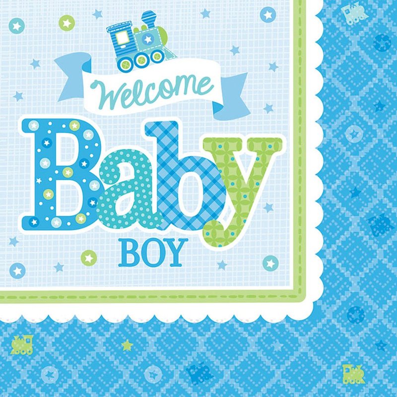 Amscan Charming Welcome Little One Boy Luncheon Napkins Baby Shower Party Supplies, 6-1/2 x 6-1/2", Blue/White/Green