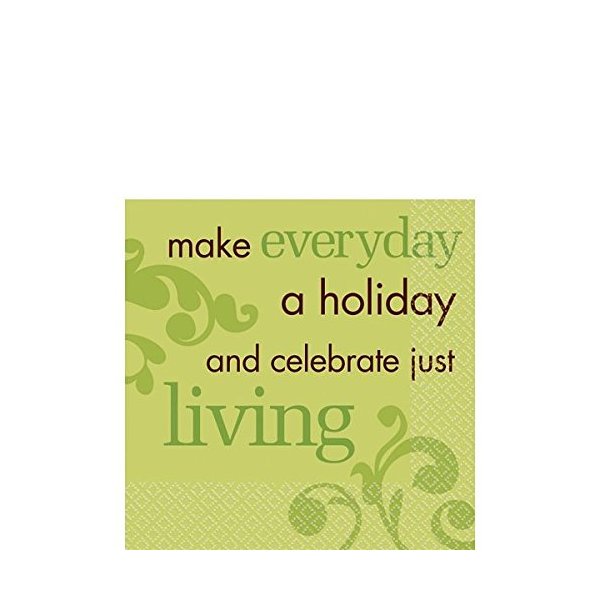 Amscan Decorative Sweet Sentiment Party Beverage Paper Napkins (16 Pack), 5 x 5, Green