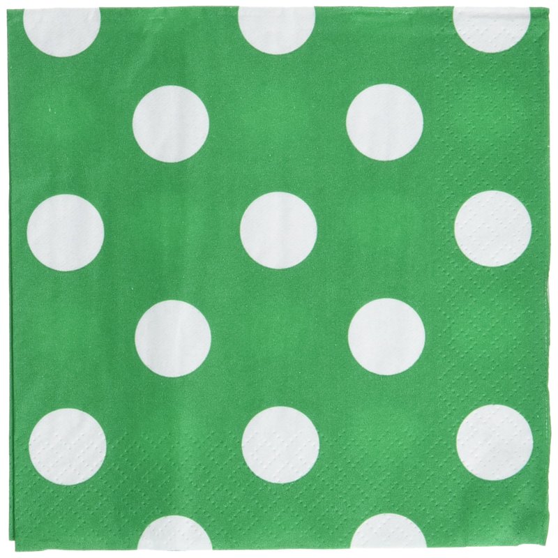 Amscan Dots Disposable Beverage Napkins Tableware for Parties (16 Piece), 5 x 5, Festive Green/White