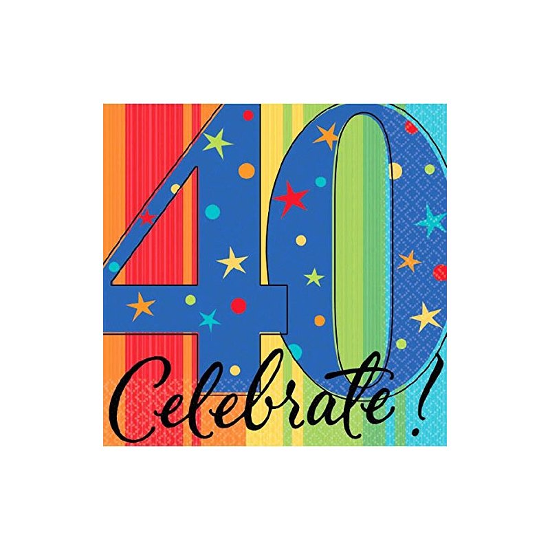 This party is going to need some A Year To Celebrate 40th Birthday Beverage Napkins in order to be prepared for the spilled beverages that will come. Each napkin features multi-colored stripes and a large 40. The pack comes in an order of 16.