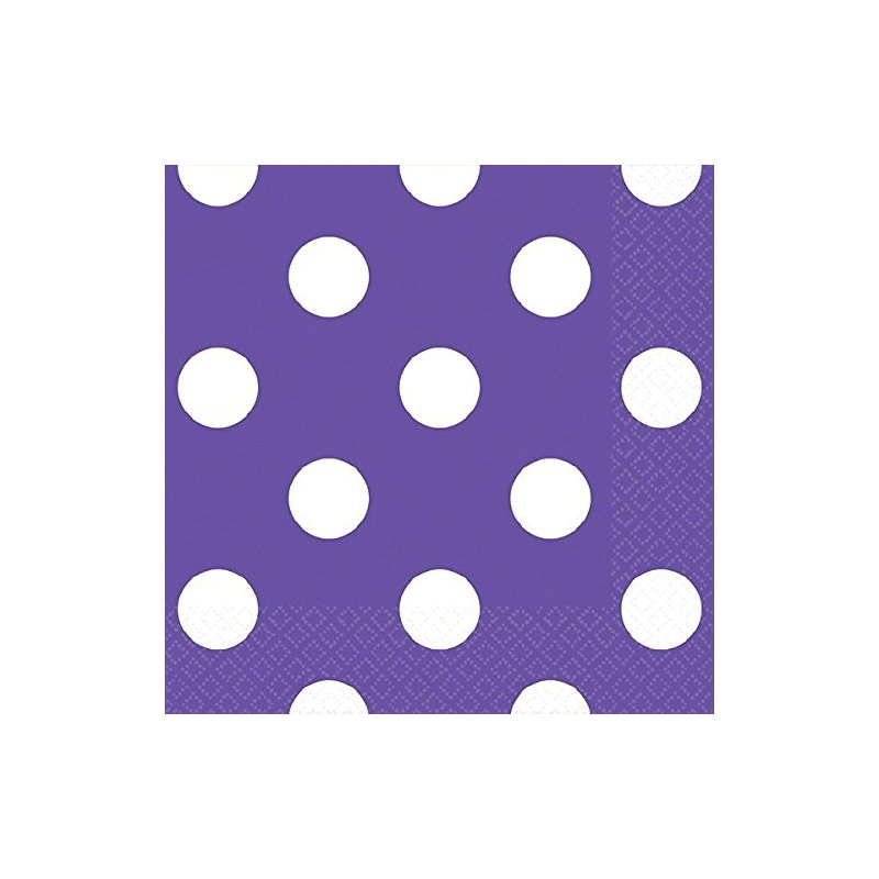 Amscan Party Supplies Dots Beverage Napkins, 5" x 5", New Purple/White
