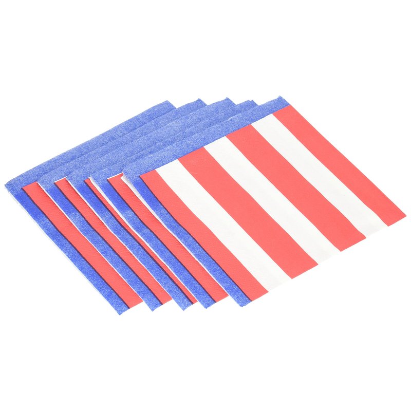 Your heart will beat true for our Stars and Stripes Beverage Napkins. Each napkin features a blue border with red and white stripes. Measures 5" x 5". Comes with 36 - 2 ply napkins per package.