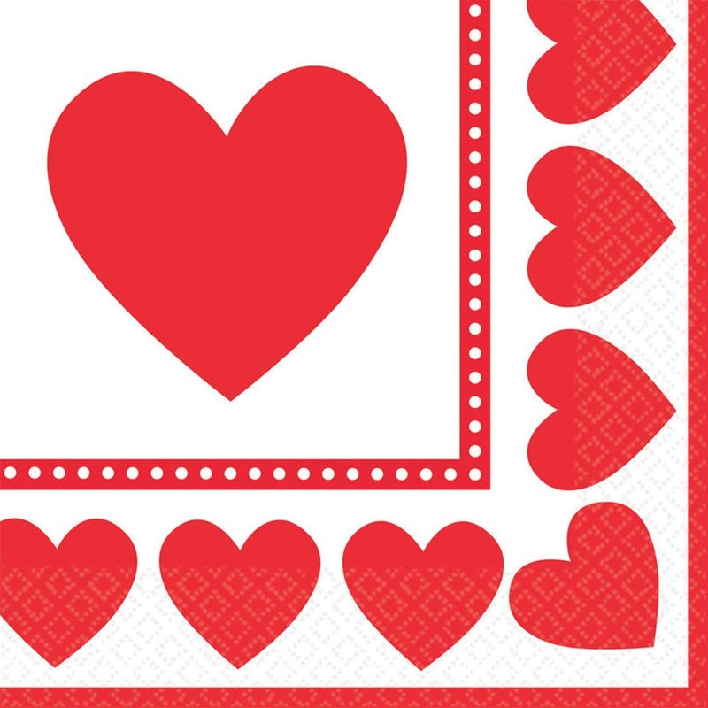 Amscan Sweet Love Valentine's Day Party Luncheon Napkins Tableware (16 Pack), 6.5" x 6.5", Red/White
