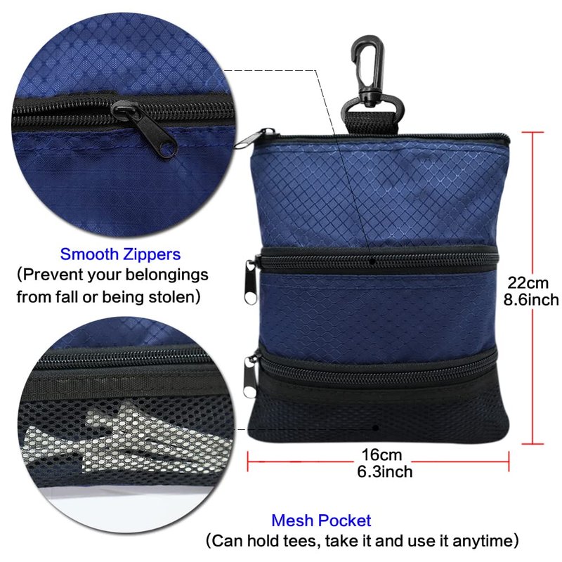 - High Quality Golf Tee Pouch: Made of qualified oxford, fine workmanship, no extra thread, anti-scratch and wear-resistant,and the mesh pocket is convenient to use;