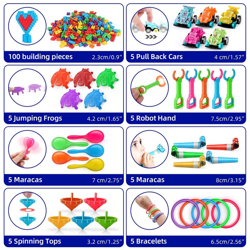 - 1.【Fun Toy Assortment:】 Ideal for kids birthday party favors, Goodie Bag Fillers, Pinata Stuffers, Carnival prizes, and Classroom Incentives.
