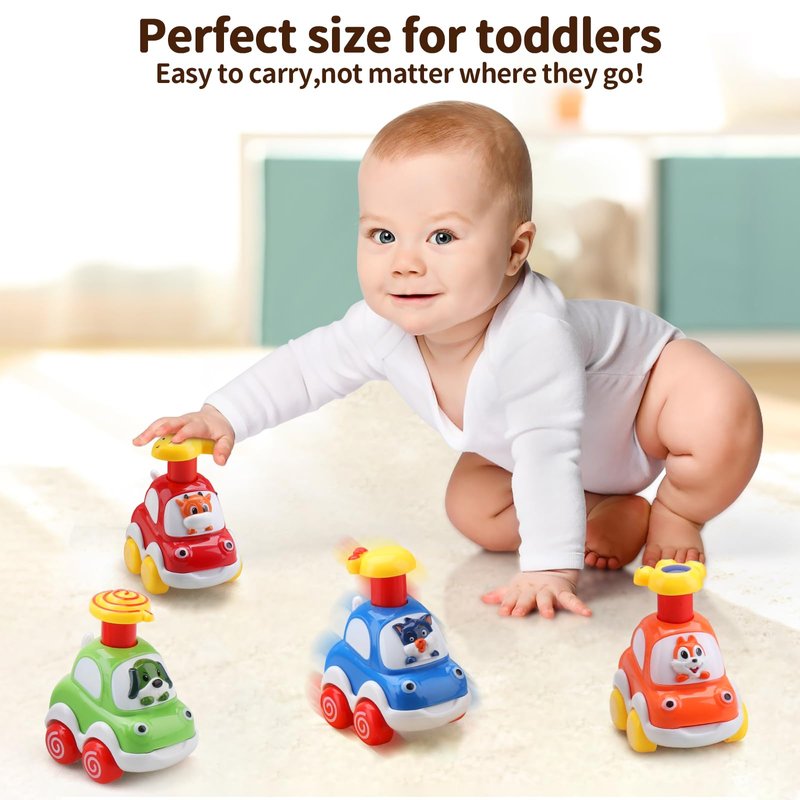 - 【Eye Catching Colors:】These toddler toy cars are vivid color, very attractive to young kids, stimulates kids’ recognition and imagination, great for early development.