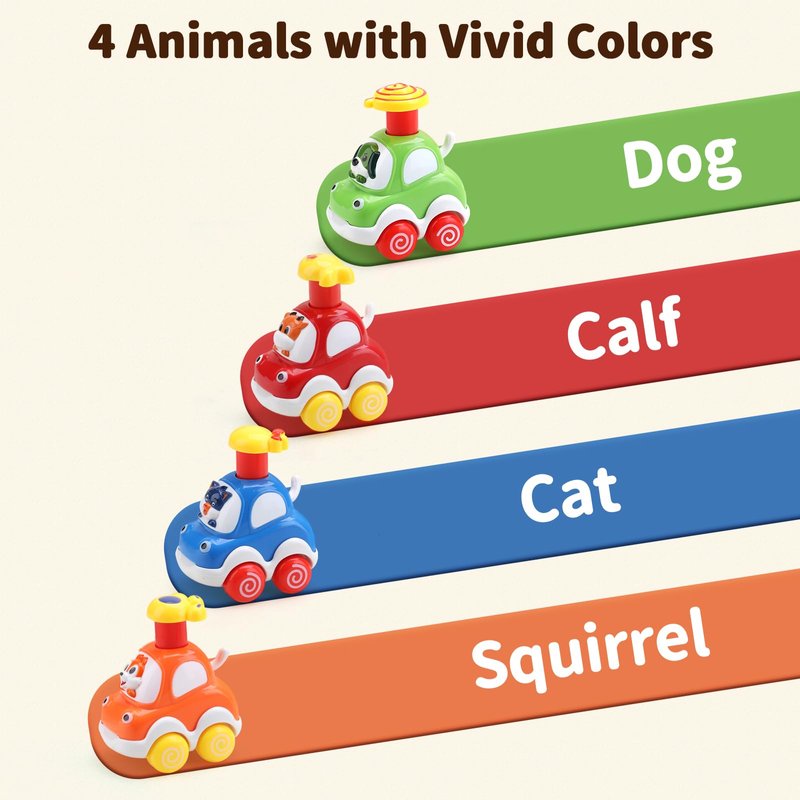 - 【Cartoon Toy Cars】: 4 Animals: calf,dog,squirrel,cat; cute & lovely .