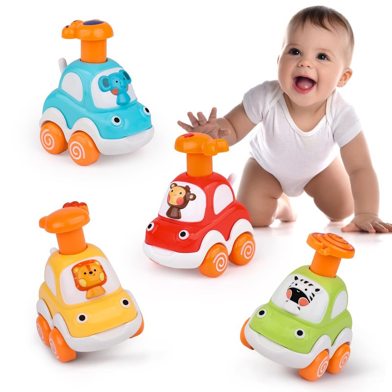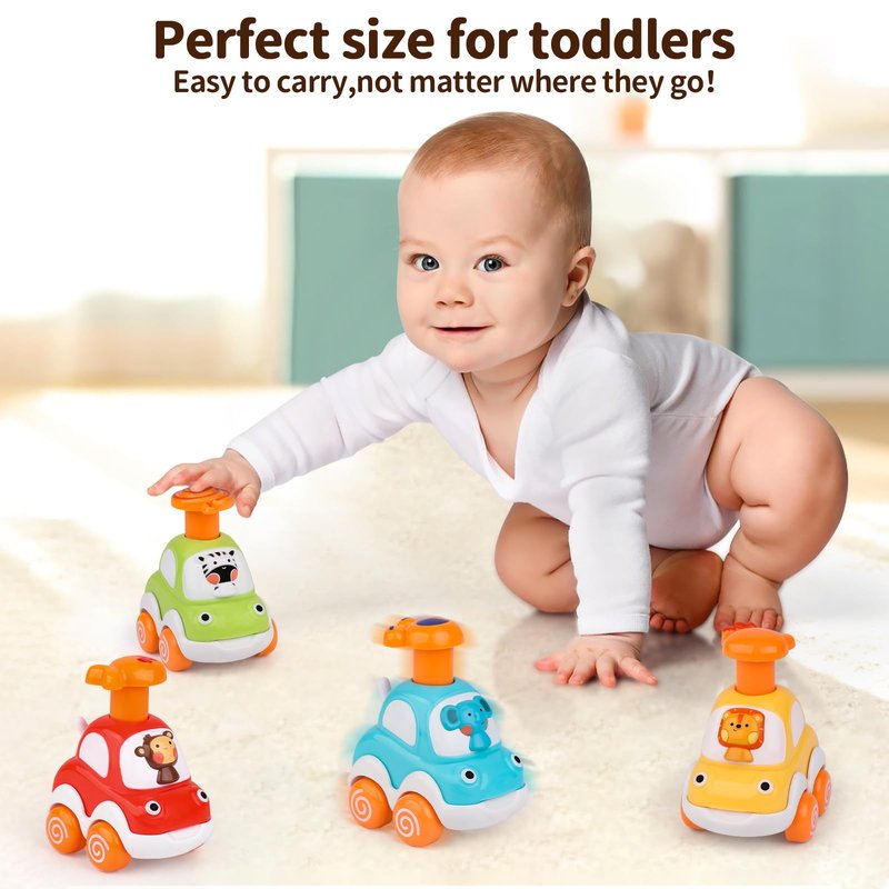 【Vibrant Colors】: These toddler toy cars feature eye-catching colors that stimulate young kids' recognition and imagination, promoting early development. 【Safe and Durable】: Made from non-toxic ABS material with smooth edges, these baby and toddler cars are safe for little hands to play with. 【Adorable Cartoon Design】: With 4 cute animal designs - lion, monkey, elephant, and zebra - these toy cars are sure to delight young children. 【No Batteries Required】: These press and go cars are energy-saving and environmentally friendly, with no need for batteries. 【Great Gift Idea】: Packaged in a high-quality and beautifully designed box, these toy cars make a perfect Christmas gift for kids.
