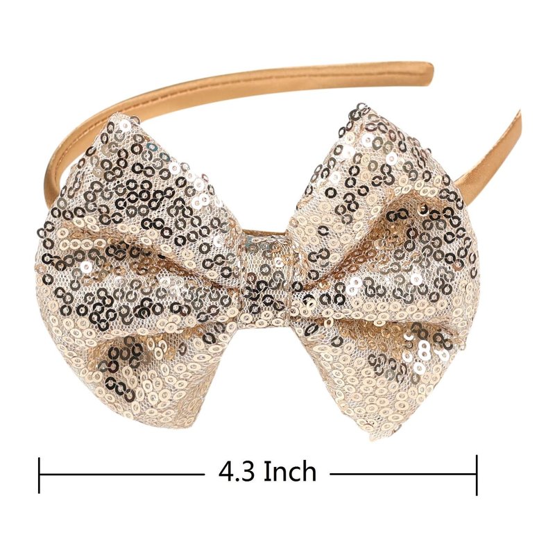 AMYDECOR Love Fairy 4.3-Inch Sparkly Sequin Bow Tie Headbands - Boutique Ribbon Bows for Girls, Kids, and Women (Gold)