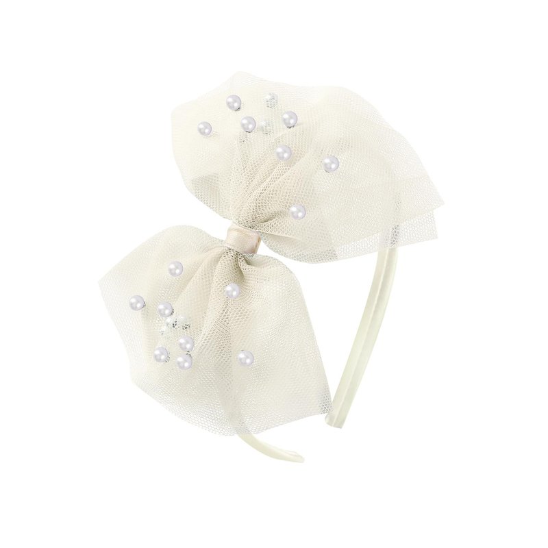 AMYDECOR Pearl Headbands Hair Accessories for Toddler Girls - Elegant Lace Veil Headbands for Birthday, Wedding, Halloween, Thanksgiving, and Christmas Occasions-Ivory