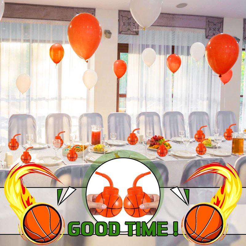 - Basketball Ball Shape Cup Set: you will receive 12 pieces of plastic basketball ball cups with lids, 12 pieces of orange plastic straws, sufficient quantity for daily use or party supplies, and can also as a gift to share with friends