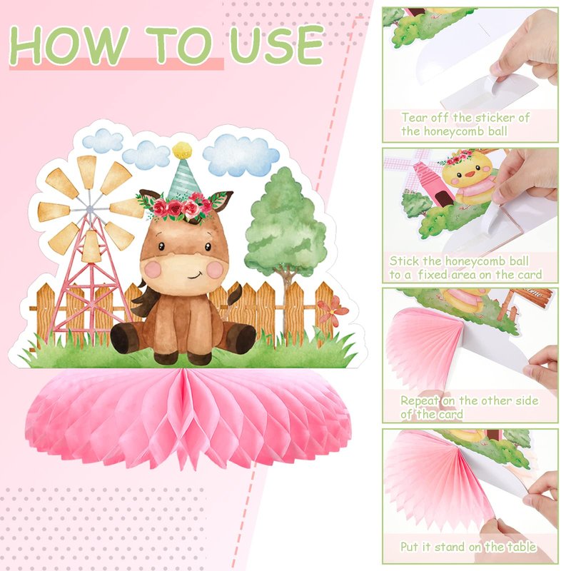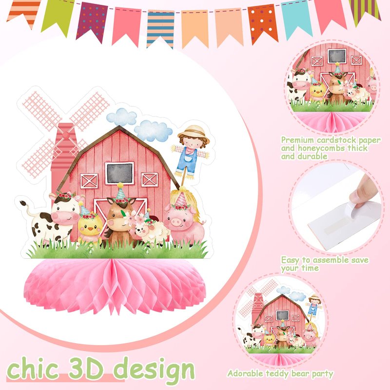 - Serviceable Material: the pink farm centerpiece decorations are made of quality thick paper card stock, sturdy and reliable, you can use them to decorate cakes or any other space at a party