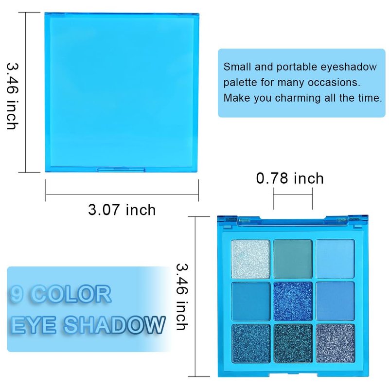 Dark Light Royal Blue Pearl White Glitter Shimmer Eye Shadow Makeup Palette,9 Colors Highly Pigmented Waterproof Matte Glitter Shimmer Daily Party Sparkling Eyeshadow Palett Gift