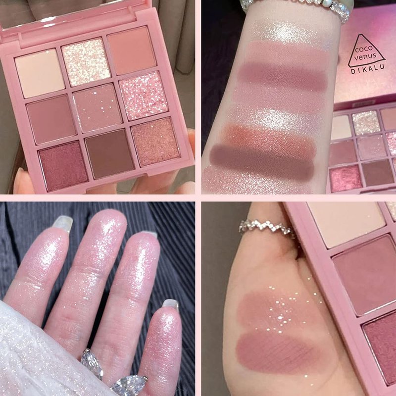 AMY'S DIARY Pink eye shadow palettes,9 Colors Pink Rose Shimmer matte High Pigmented Glitter Pallete Eyeshadow Makeup Colorful Lasting Waterproof Makeup Eyeshadow Palette