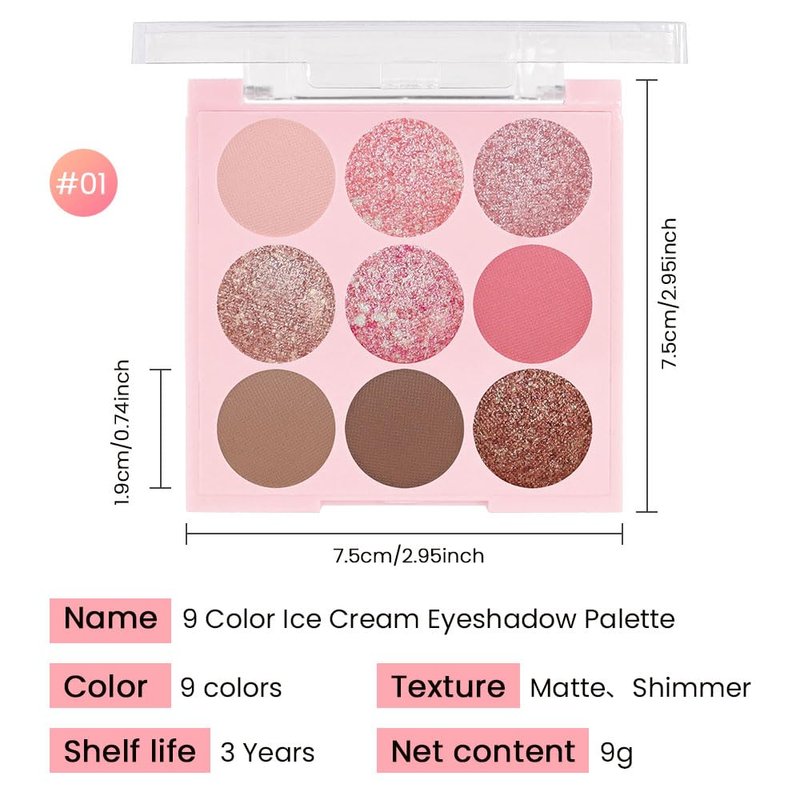 AMY'S DIARY Pink Shimmer Eye Shadow Makeup Palette 9 Colors, Highly Pigmented Matte Glitter Shimmer Pearl Waterproof Party Sparkling Eyeshadow Palette (01#)