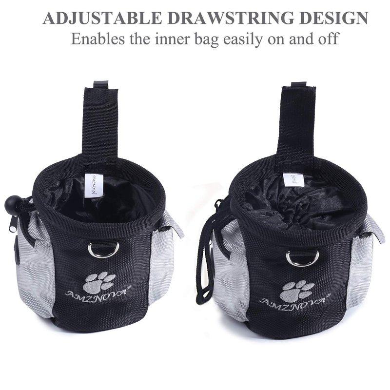 AMZNOVA Dog Treat Bag, Puppy Training Pouch, Animal Walking Snack Container Best Hiking Toys Pack Dispenser Carries with Waistband, Black