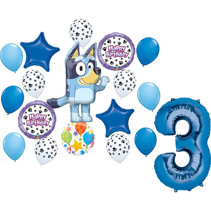 Anagram Bluey 3rd Birthday Party Supplies Balloon Bouquet Decorations With Paw Prints